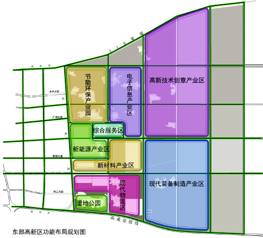 <東部高新區(qū)規(guī)劃面積40平方公里,主要引進高新技術(shù)及商貿(mào)物流等節(jié)能環(huán)保項目,已有東方雨虹、北京創(chuàng)導、山東蘭劍物流、順方管業(yè)、瑞那斯節(jié)能門窗幕墻等一批實力雄厚的上市公司和行業(yè)龍頭進駐。