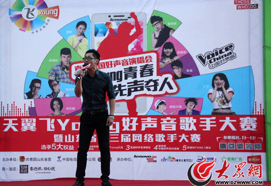 6月15日,天翼飛young好聲音歌手大賽暨山東省第三屆網(wǎng)絡歌手大賽煙臺&威海站開賽,煙臺新世界百貨廣場上激情萬分,2013年飛young校園好聲音冠軍徐亞飛和中國好聲音明星學院單沖鋒的激情獻唱,引來眾多駐足。