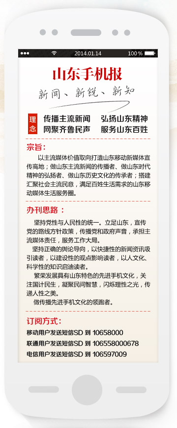 山東手機報、山東手機報客戶端由中共山東省委宣傳部、山東省網絡文化辦公室主管,大眾報業集團主辦,山東手機傳媒有限責任公司全面負責山東手機報的整合、編發、審核和運營推廣工作。我省是全國率先推進手機報“一省一報”工作的五個試點省份之一,也是中國移動“一...[詳細]