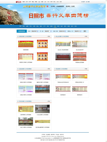 “山東善行義舉四德榜”展示平臺(tái)秉承弘揚(yáng)“四德”的宗旨,通過(guò)先進(jìn)的網(wǎng)絡(luò)技術(shù),將山東各地的“四德榜”搬上互聯(lián)網(wǎng),借助網(wǎng)絡(luò)強(qiáng)大的傳播力量,讓每一個(gè)榜單都能被大家看到,每一位榜上有名的模范都能被褒揚(yáng)和學(xué)習(xí),從而在互聯(lián)網(wǎng)上形成“人人做好人,好人做好事,好事就上榜,好人有好報(bào)”的良好氛圍。整個(gè)平臺(tái)涵蓋了17市的137個(gè)縣(市、區(qū)),各個(gè)村(社區(qū))、學(xué)校、企業(yè)和窗口單位的“四德榜”可以即時(shí)在網(wǎng)上呈現(xiàn)。隨著展示平臺(tái)內(nèi)容的不斷完善,網(wǎng)站將開(kāi)通互動(dòng)功能,網(wǎng)友可以對(duì)各地的“四德榜”和模范進(jìn)行點(diǎn)評(píng);網(wǎng)站將逐步成為實(shí)時(shí)展示各地工作成果,考核各地工作情況的多功能綜合性平臺(tái)。同時(shí)網(wǎng)站也將開(kāi)設(shè)各類專題和舉辦多種活動(dòng),開(kāi)通微博、微信,上傳微電影、微視頻,使社會(huì)主義核心價(jià)值觀在廣大群眾中以寓教于樂(lè)的形式得到最廣泛的弘揚(yáng)和踐行。