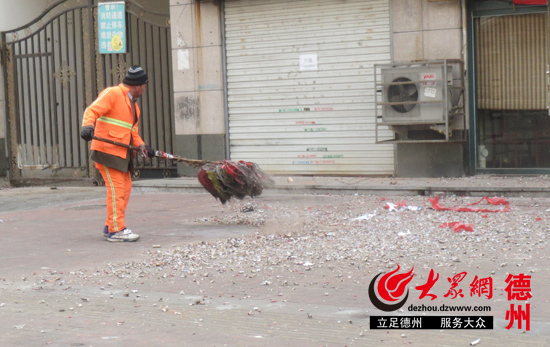 環衛工張師傅早上不到6點就來到自己負責打掃的建新街打掃衛生,可是接連不斷的“開門炮”卻讓張師傅折騰了一上午。由于商家們燃放鞭炮的時間不固定,因此張師傅只能在街上等著,店鋪燃放完鞭炮后,他就去打掃,一個上午也沒歇著。
