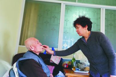 房澤秋在喂李玉柱老人吃香蕉