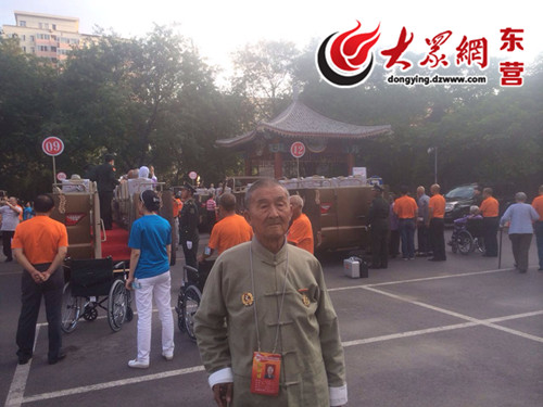 大眾網東營9月2日訊 (記者 向玲)面對鏡頭,挺直腰板,舉起右手……9月2日,記者看到了東營抗戰老兵孫合全從北京發回的照片,他用一個莊嚴的軍禮向祖國致敬。明天,他將與其他抗戰老同志一起,乘車經過天安門廣場,接受檢閱。