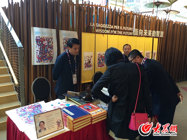游客在中國館欣賞楊家埠年畫。