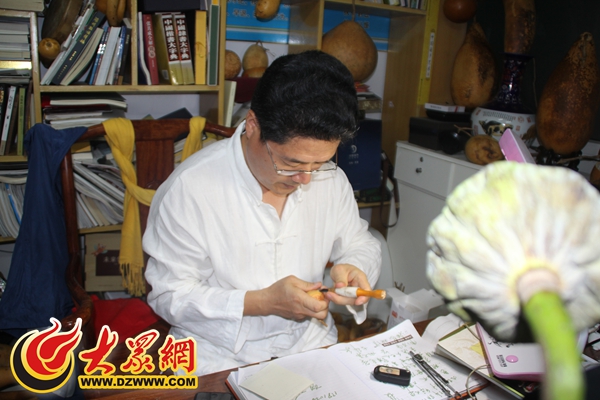 孫希洲說,“雕刻葫蘆是個非常費(fèi)眼睛的活,一開始學(xué),稍不留神就會劃破手,要求眼、心、手高度專一。”