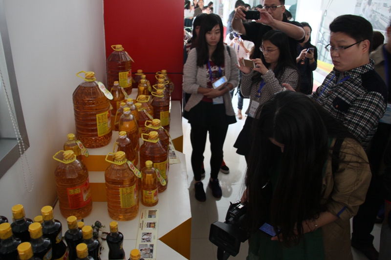 采訪團記者參觀魯花的產品。(盛堃 攝)