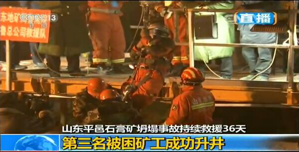 22:21,第三名被困礦工成功升井