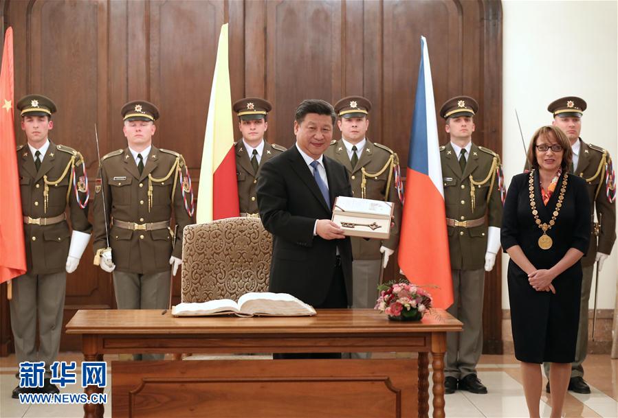 當(dāng)?shù)貢r間3月29日,國家主席習(xí)近平在捷克布拉格會見布拉格市長科爾娜喬娃,并接受科爾娜喬娃代表該市贈予的城市鑰匙。 新華社記者 王曄 攝