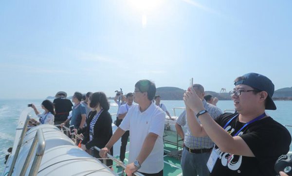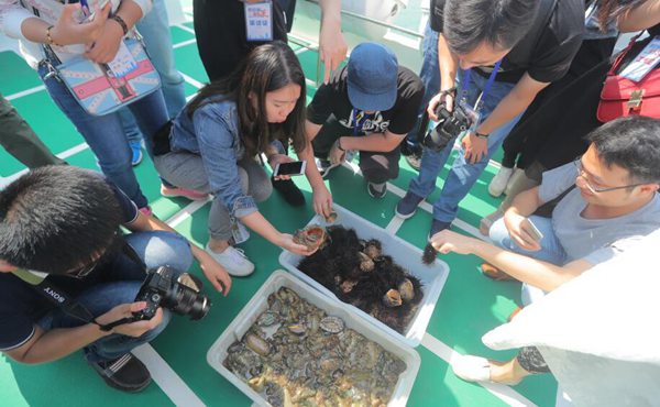 22日上午,采訪團(tuán)的記者們從西霞口休閑垂釣基地迎著清新的海風(fēng)乘船出海,在漁民的指導(dǎo)下體驗(yàn)海上垂釣和捕撈海參的過程。潛水員下水捕撈野生海參的過程中,船上的工作人員用簡單的工具布餌下鉤,每一條魚活蹦亂跳著上鉤,都引來記者們一陣掌聲。