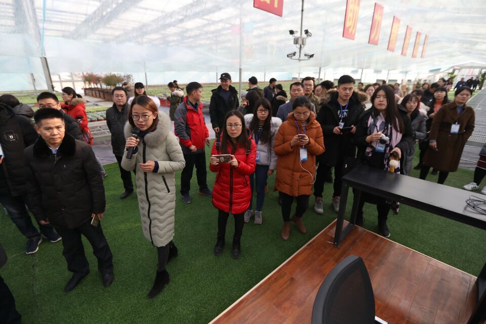 采訪團參觀青州國際花卉創(chuàng)業(yè)園。