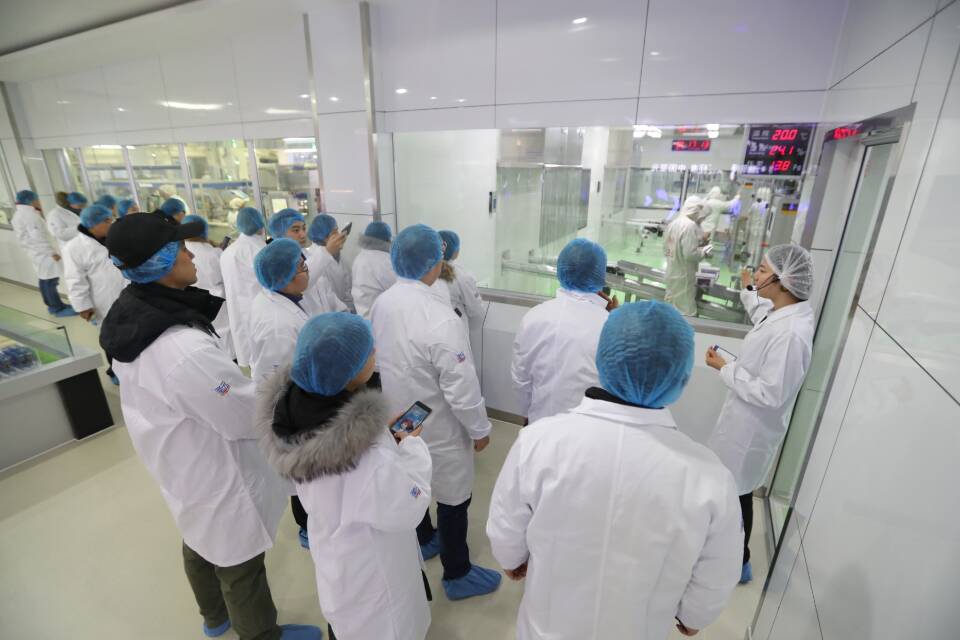 采訪團(tuán)參觀圣元營(yíng)養(yǎng)食品有限公司的生產(chǎn)車間。