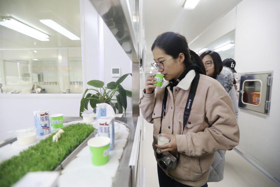 采訪團(tuán)記者品嘗圣元營(yíng)養(yǎng)食品有限公司的產(chǎn)品。