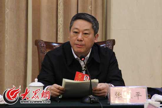 山東省人大代表、臨沂市長張術平在臨沂團分組審議時發言。