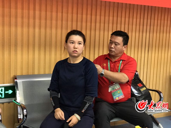 在比賽后,石震拍了拍張夢(mèng)雪的肩膀,幫她把身后的號(hào)碼簿摘下來。他對(duì)大眾網(wǎng)記者說,“有些事情不用言語,這只是開始,在后面的比賽里,她會(huì)把精彩展現(xiàn)給大家。”