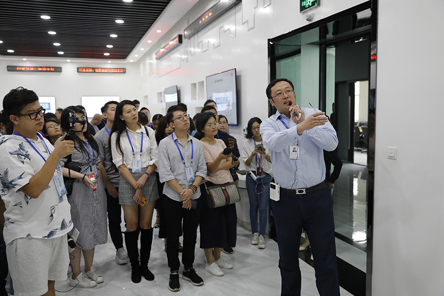 神思電子總裁井焜向采訪團(tuán)介紹神思電子發(fā)展歷程。