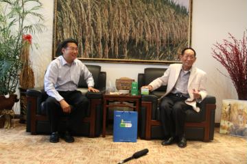 在東海藥業博覽館,這個世界上第一個微生態博覽館,東海藥業董事長崔云龍向采訪團記者講述了東海與袁隆平院士的故事。