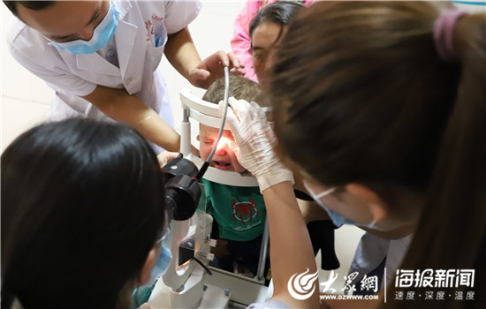 山東大學第二醫院眼科醫生王合雷對患者進行仔細篩查。(仇晶 攝)