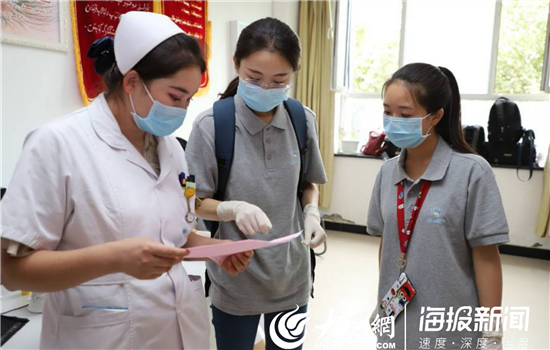 山東大學(xué)第二醫(yī)院眼科醫(yī)生張曉陽、護(hù)士朱靜潔向麥蓋提縣人民醫(yī)院醫(yī)護(hù)人員仔細(xì)核對(duì)患者信息。(仇晶 攝)