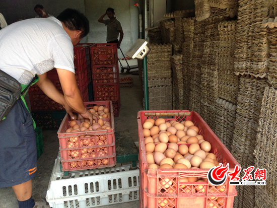 經(jīng)銷商正在收購(gòu)雞蛋。(大眾網(wǎng)見習(xí)記者 孫乘昀攝)
