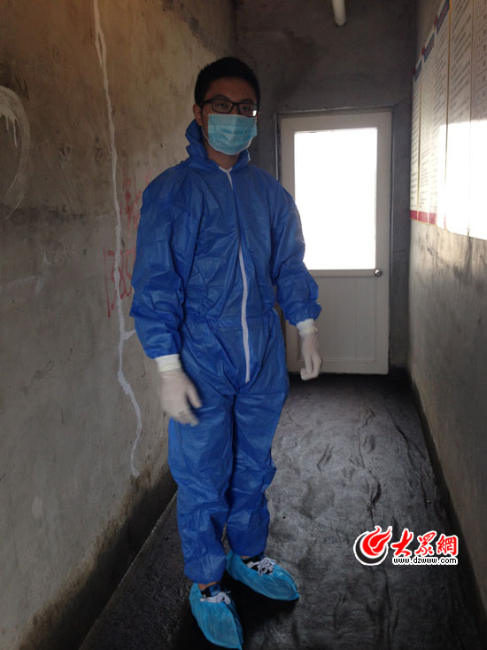 大眾網(wǎng)記者穿好防護(hù)服,準(zhǔn)備進(jìn)入雞舍。
