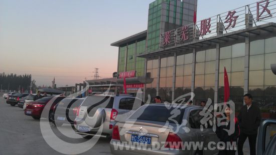 當車輛行駛至章丘服務區的時候,天色開始泛亮,這時章丘服務區內的商店還沒有開門,顯得有些冷清,停車場內除了停放了十幾輛大貨車外,小型車只有5輛,也大多是來自北京、江蘇的車輛。