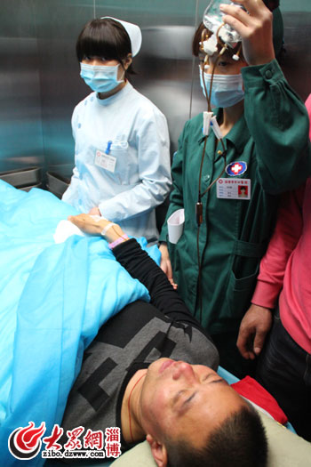 上午10時許,大眾網記者趕到淄博市中心醫院急診室時,已經站滿了宋豐升 的親朋好友,當地的電視臺和記者也都紛紛趕來。宋豐升從昨晚淄博市第七人民 醫院轉入淄博市中心醫院后,接受了緊急治療。由于病房的緊缺,宋豐升至今還 沒入住病房。