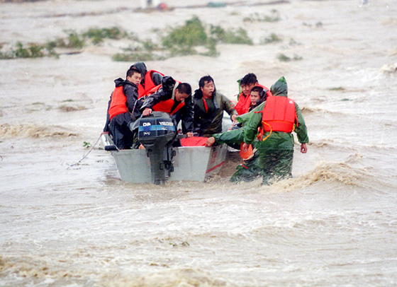 這時又接到報告,還有人被困在里面。海潮已漲了四米多,海面上騰起一個個嚇人的開花浪,形勢萬分危急,每一秒鐘都人命關(guān)天!這時候,再想趟著海水去救人已經(jīng)不可能了,駐濰部隊(duì)的戰(zhàn)士們運(yùn)來的沖鋒舟,也從未在風(fēng)力超過8級的海水里使用過,在11級臺風(fēng)和暴雨呼嘯聲中,他穿上救生衣就和一名駕駛沖鋒舟的戰(zhàn)士又一次下了海。