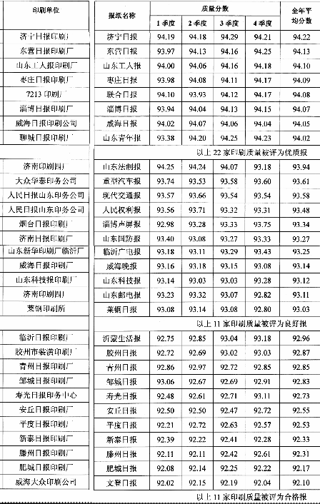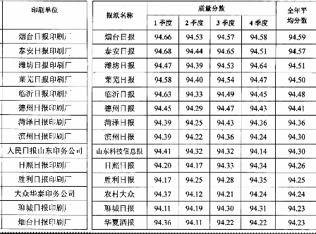 2002年度黑白報(bào)紙印刷質(zhì)量匯總表