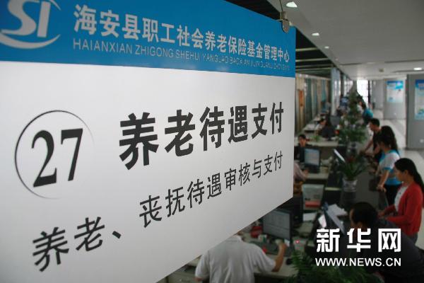 資料圖片:6月2日,在江蘇南通海安縣職工社會(huì)養(yǎng)老保險(xiǎn)基金管理中心,人們?cè)谵k理養(yǎng)老待遇支付業(yè)務(wù)。新華社發(fā)