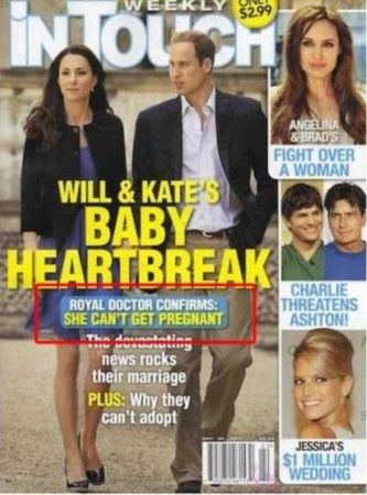 英國新王妃凱特日前與威廉王子風光完婚,皇室最注重的傳宗接代問題,她似乎也不緊張,過去皇室傳統(tǒng)有婚后一年生下后嗣的習俗,但凱特曾說過希望一年后再來思考這問題;不過美雜志《In Touch》封面就大篇幅爆料,皇室醫(yī)生證實凱特有不孕癥!(新華網(wǎng))