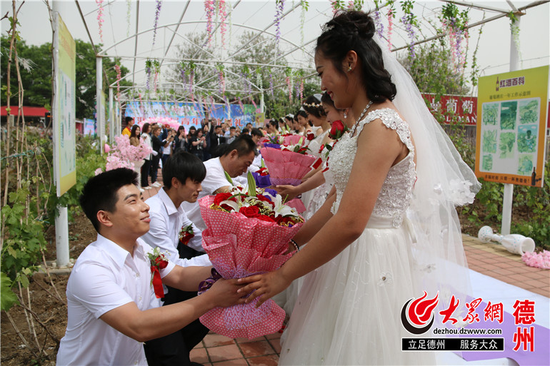 大眾網德州5月4日訊(見習記者 徐瑞 通訊員 張瑞 周青)5月4日,德州市黃河涯鎮首屆青年集體婚禮在奧德曼酒莊舉行,共有13對新人參加,區委常委、宣傳部長駱曉東出席。