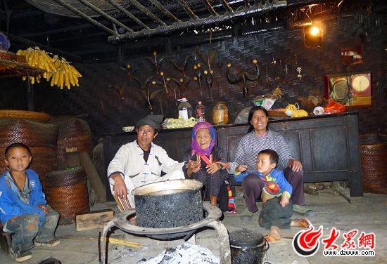 歐得得的家在山上,茅草頂,草席墻。