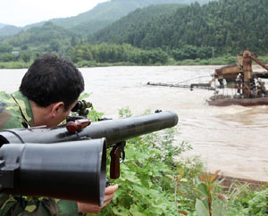 水電站泄洪險象環生 軍警合力炸船保大橋