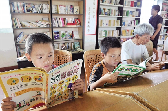 一處“農家書屋”,幾名讀者在看書。