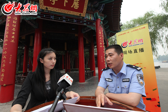 微風習習、水波蕩漾。在美麗的大明湖歷下亭,濟南市公安局大明湖派出所所長韓超做客所長在線與網友和讀者進行交流。韓超所長為我們解釋說,為了做好景區的安全防范,派出所與大明湖景區安保部門建立聯動機制,配備了統一的對講機。