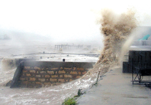 8月6日上午,受到臺風“麥莎”襲擊的石浦港碼頭,經受住了巨浪的沖擊。從6日凌晨3點40分在浙江省玉環縣登陸后,“麥莎”一路夾風帶雨,造成了重大損失。□新華社發