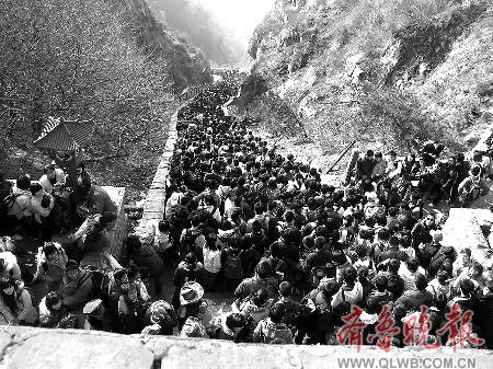 清明三天小長假,泰安共迎來游客68.5萬人次,和去年同期相比增長35.6%。圖為4月5日上午,泰山十八盤上游人如織。劉偉 攝
