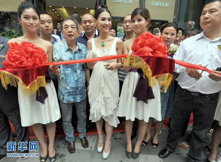 8月24日,張柏芝(中)現身武漢花園道,為一珠寶店新店開張剪彩。 新華社發