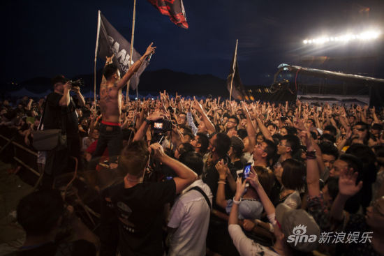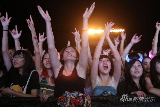 傍晚,木瑪&Third Party樂隊用最大汗淋漓的音樂和舞步撼動了全場樂迷,主唱木瑪從臺上跳到臺下,前排女樂迷們的瘋狂尖。