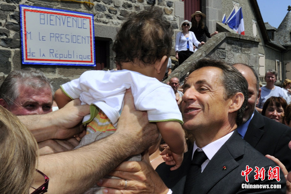 當地時間7月1日,法國總統薩科齊來到法中部城鎮Mur-de-Barrez視察,與當地民眾零距離接觸.他從民眾手中抱起一個叼著奶嘴的小嬰兒,不知是何原因,小寶貝竟然大哭起來。